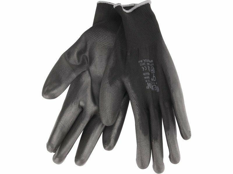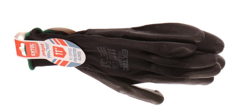 rukavice z polyesteru polomáčené v PU, černé, velikost 11", EXTOL PREMIUM