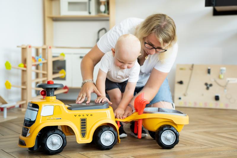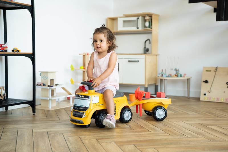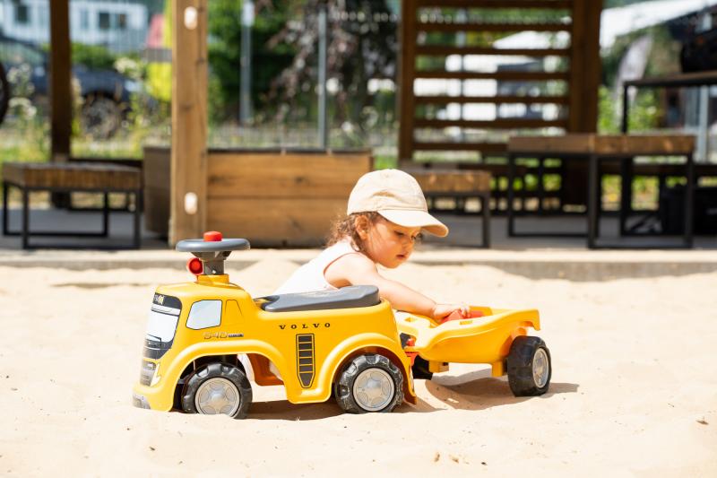 Odrážedlo Volvo je díky volantu s klaksonem také obratné a má vynikající stabilitu. Je ideální na rozvoj hrubé motoriky a rovnováhy vašeho dítěte prostřednictvím hry a zároveň zajišťuje jeho bezpečnost.Pod sedadlem je skrytý malý úložný box a přizpůsobitelná evidenční značka vám umožní přizpůsobit si vaše oblíbené auto!