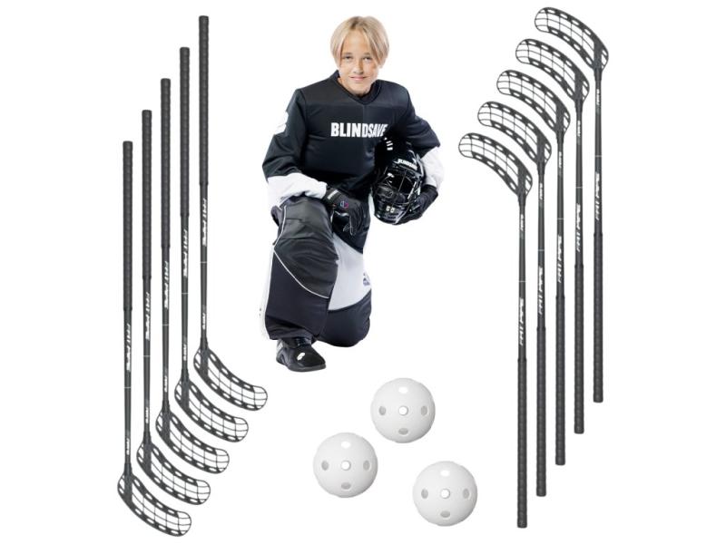 Tento balíček ponúka všestranné florbalové vybavenie, ktoré je navrhnuté špeciálne pre potreby školských tímov a krúžkov s hráčmi vo veku 15 až 17 rokov. Vďaka kombinácii pravých a ľavých florbaliek s dĺžkou 101 cm vyhovuje rôznym hráčskym preferenciám a zabezpečuje pohodlné držanie a ovládanie loptičky.