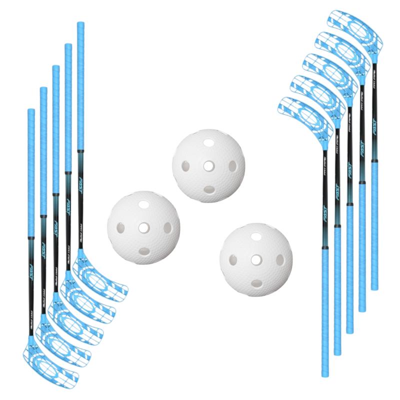 Kompletní sada florbalového vybavení pro děti od 9 do 12 let, vhodná pro tělocviky a školní kroužky, obsahuje florbalky a míčky pro menší kolektivy.Tento balíček nabízí kompletní vybavení pro florbalové tréninky a zápasy dětí ve věku od 9 do 12 let, ideální pro školy a školní kroužky. Obsahuje 3 pravé a 7 levých florbalek Fat Pipe o délce 87 cm, které jsou přizpůsobené pro menší ruce a umožňují dětem pohodlnou a efektivní hru.