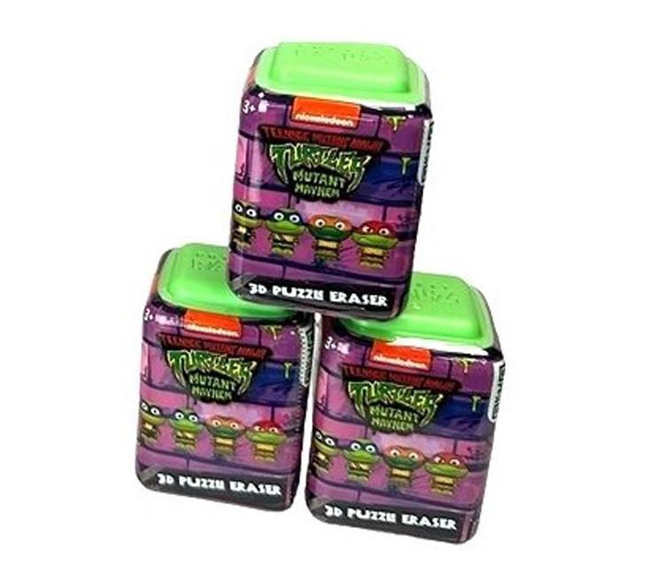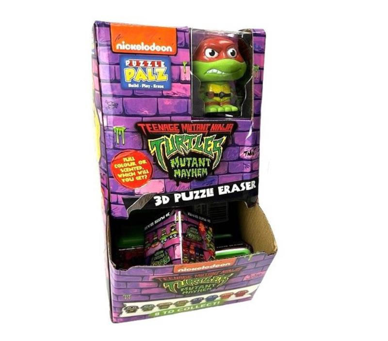 Krabička s překvapením obsahující figurky s motivem Želvy Ninja (TMNT, Teenage Mutant Ninja Turtles), 2v1 figurka a skládačka. Leonardo, Michelangelo, Raphael a Donatello.