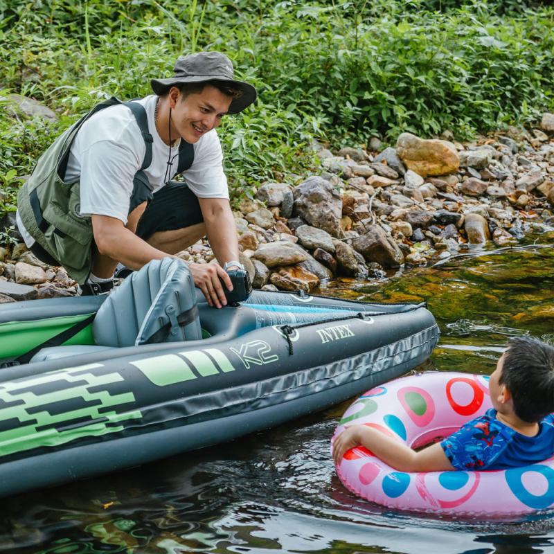 - Obsluha je velmi snadná. Pumpu lze použít kdykoli a kdekoli. Po úplném nabití nafoukne až 15 kajaků o rozměrech 274 cm x 76 cm x 33 cm. Doba nafukování jednoho kajaku je zhruba 100 sekund.