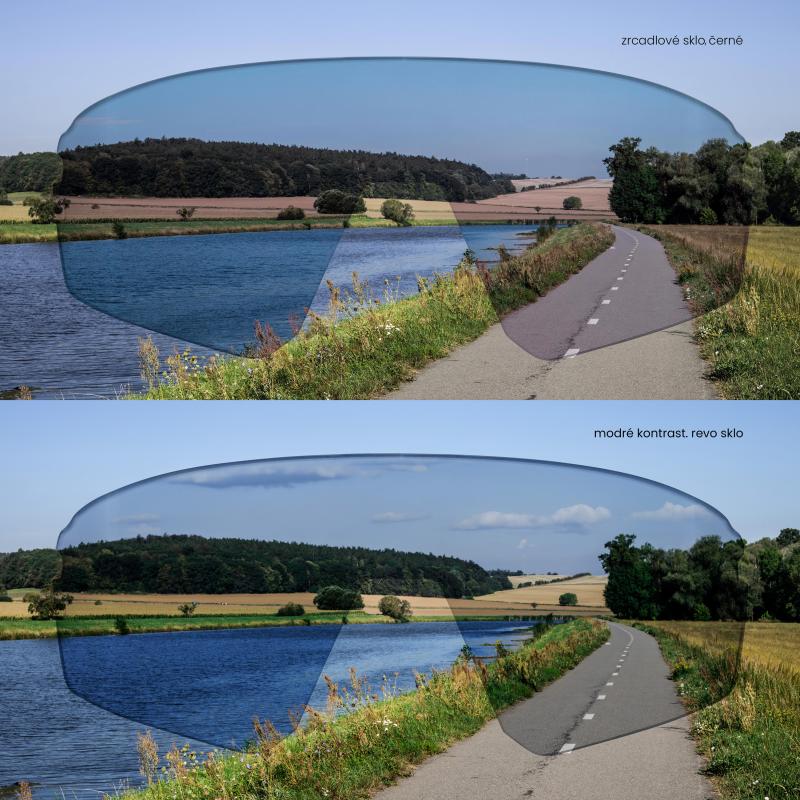 vsazené kontrastní revo modré a černé zrcadlové skla