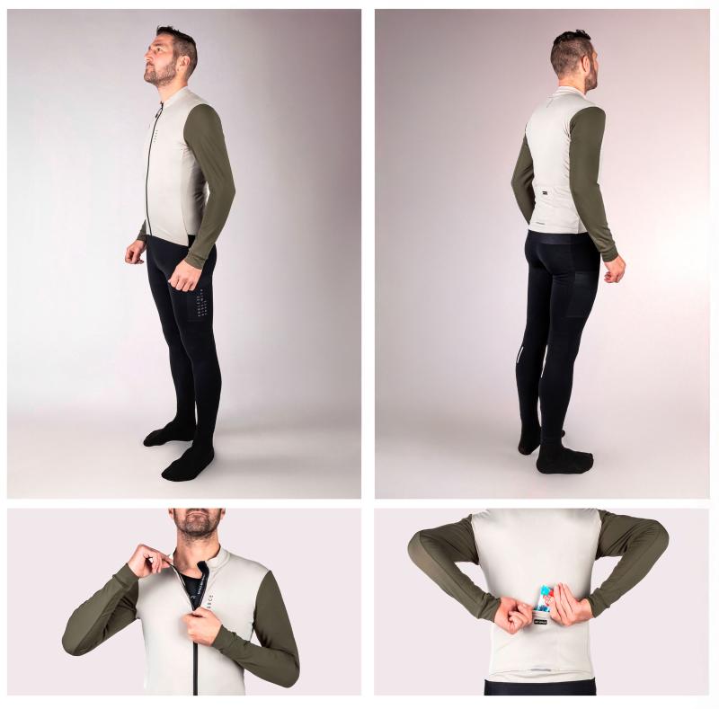 Force ENDLESS béžovo-zelený cyklodres - dlouhý rukáv + doprava zdarma