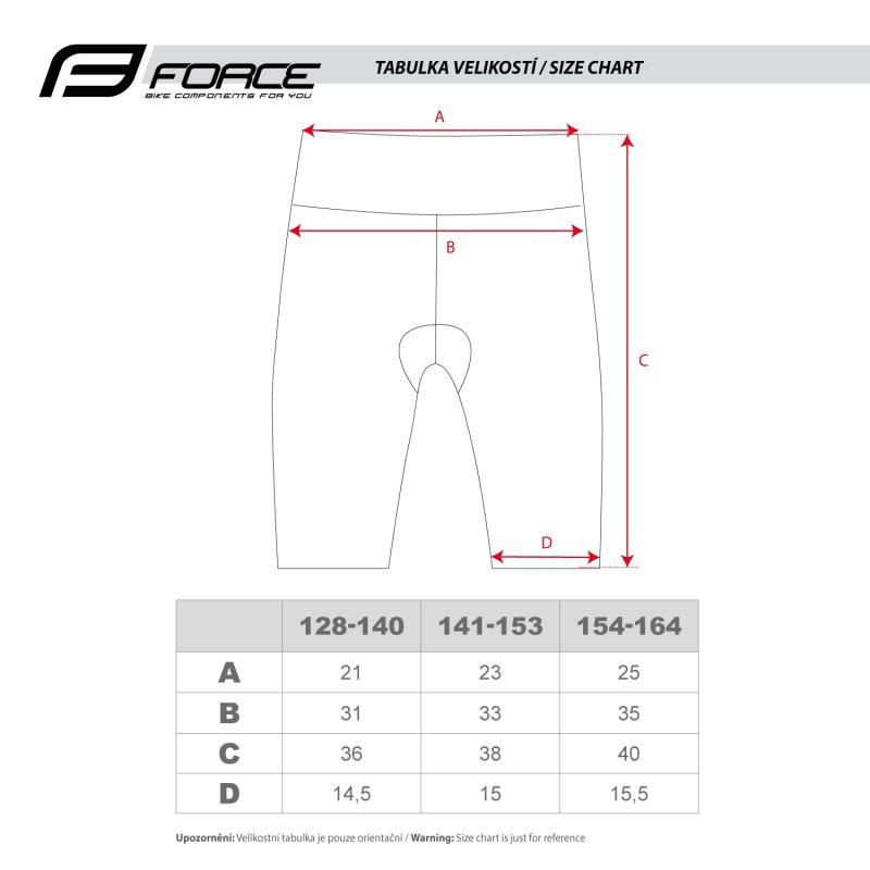 Dětské cyklistické šortky Force. S vložkou.Velikost 128 -140 cm