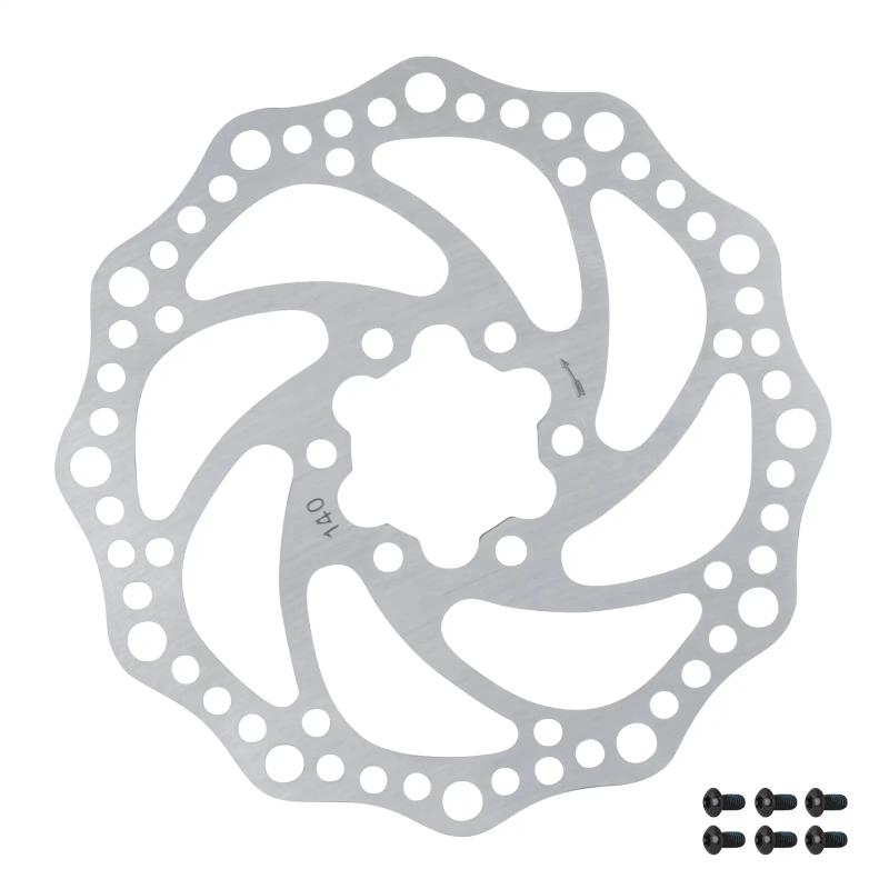 Brzdový kotouč o průměru 140 mm s uchycením na 6 šroubů z nerezové oceli, včetně potřebných šroubů pro montáž. zobrazit celý popis