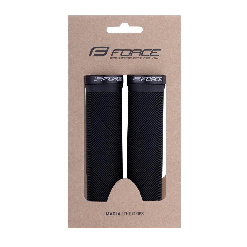 Madla jsou balena na kartě s logem FORCE, což usnadňuje jejich skladování a prezentaci. Materiál madel je z kvalitní gumy, která zajišťuje příjemný pocit při držení a snižuje únavu rukou během delších jízd.