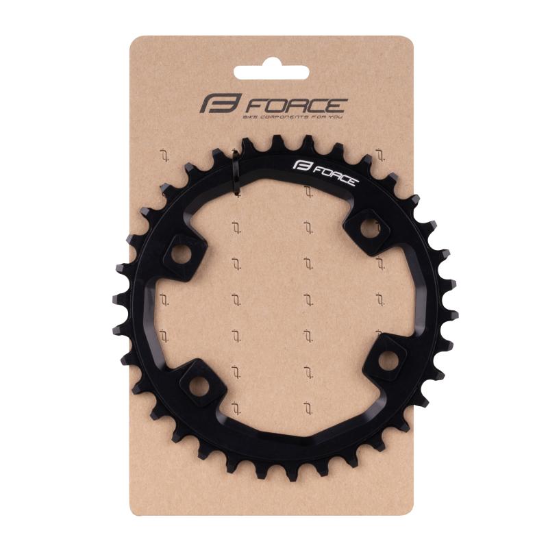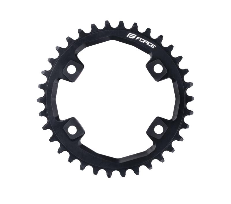 Materiálem převodníku je kvalitní hliník AL 7075, který nabízí výborný poměr pevnosti a hmotnosti. Rozteč šroubů uchycení, tzv. BCD (bolt circle diameter), je 96 mm u čtyřpacky, což znamená, že se měří vzdálenost mezi osami protilehlých šroubů. Počet zubů na převodníku je 34, což je vhodné pro univerzální použití v terénu i na silnici.