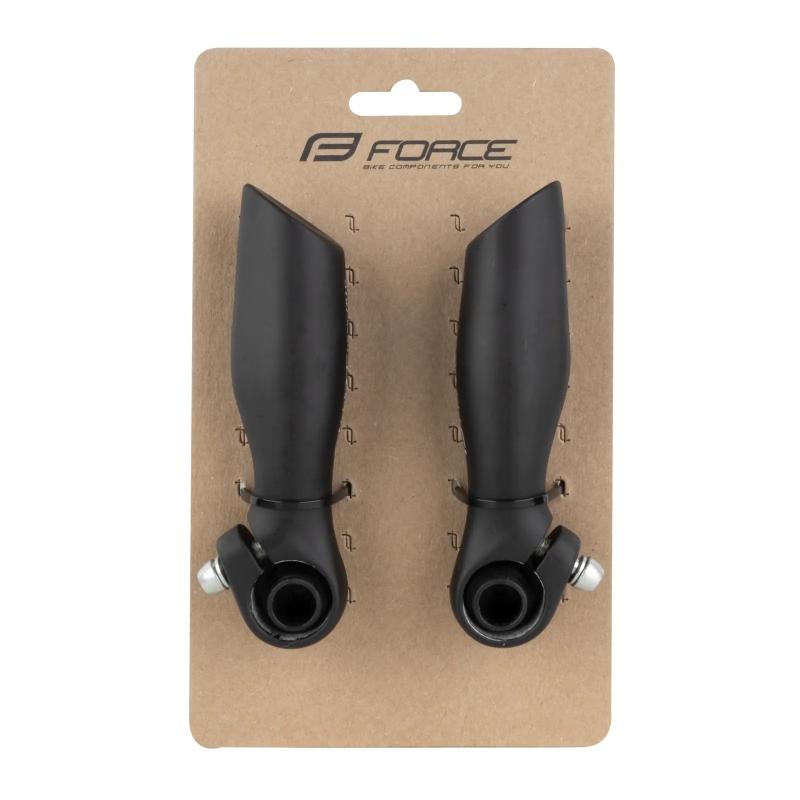 Tieto rohy na riadidlá sú navrhnuté s dôrazom na ergonómiu, čo zabezpečuje pohodlný a pevný úchop počas jazdy.\n\nDĺžka rohu od osi po vrchol činí 11,5 cm, čo umožňuje dostatočnú oporu rúk a lepšiu manipuláciu s bicyklom. Materiál je ľahký hliník (Al) s povrchovou úpravou v matnej čiernej farbe, doplnenou o čierne lesklé logo FORCE, ktoré podčiarkuje decentný dizajn.\n\nHmotnosť jedného rohu je 131 g, čo prispieva k nízkej celkovej hmotnosti riadidiel a nepridáva zbytočnú váhu na bicykel. Produkt je balený na karte FORCE a obsahuje aj zátku, ktoré zabezpečia bezpečné a pevné uchytenie na konci riadidiel.\n\nTechnické informácie a veľkostná tabuľka sú k dispozícii na stiahnutie na adrese:\nhttps://www.kckcyklosport.cz/ImgGalery/Img1/files/ROHY_man.pdf\n\nTieto rohy sú vhodné pre cyklistov, ktorí hľadajú ergonomické doplnenie riadidiel pre lepší komfort a kontrolu pri jazde. Vďaka použitiu hliníka sú odolné a zároveň ľahké, čo ocenia najmä tí, ktorí dbajú na kvalitu a funkčnosť vybavenia.\n\nPri montáži je potrebné dbať na správne upevnenie zátok, aby nedošlo k uvoľneniu počas jazdy. Výrobok je určený pre štandardné riadidlá, preto je vhodné skontrolovať kompatibilitu pred inštaláciou.\n\nZvoľte tieto rohy, ak chcete zvýšiť pohodlie a ovládateľnosť svojho bicykla s jednoduchou a praktickou pomôckou, ktorá nezaťaží váhu ani nepôsobí rušivo.