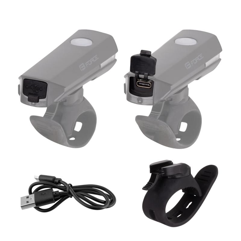 Set 2x Force Světlo přední SHARK 500LM USB, č...