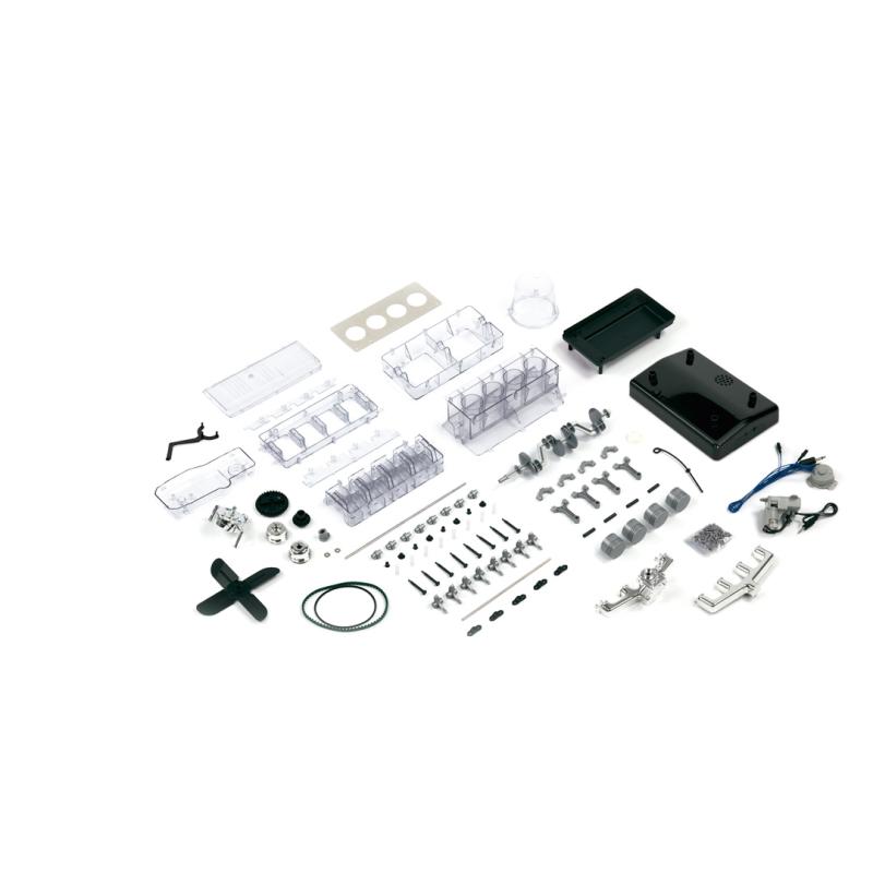 Funguje bez lepenia alebo spájkovania! Priehľadné púzdro vám umožní vidieť všetky procesy vo vašom 4-valcovom motore: Piesty stúpajú a klesajú ako u väčšieho modelu a dokonca je simulovaná zapaľovacia iskra. Viac než 100 komponentov, elektrický hnací motor, štartovací box, rozdělovač zapaľovania a mnoho ďalšieho...