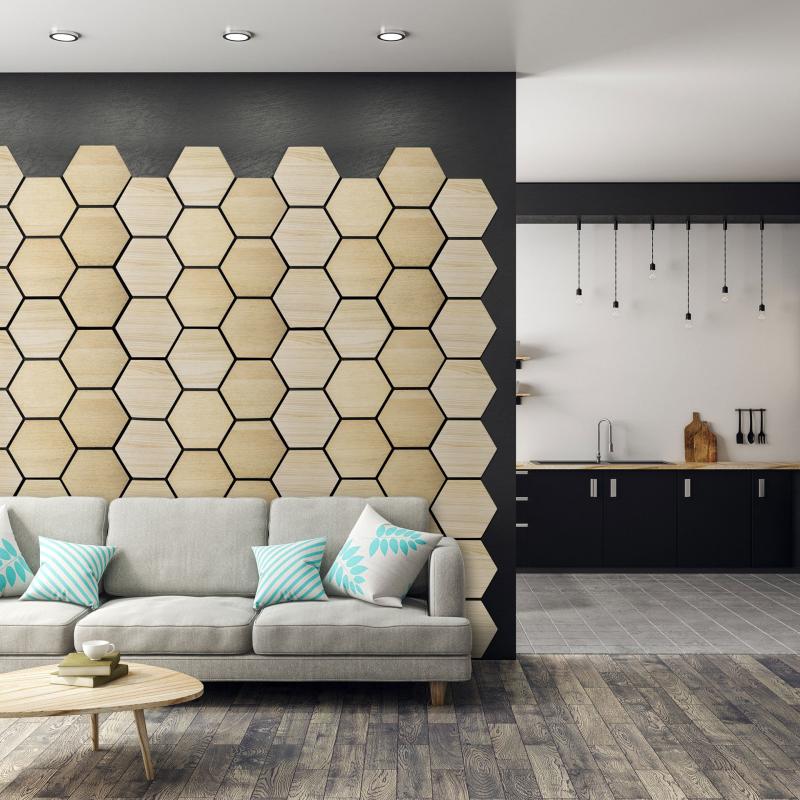 Designový interiérový akustický nástěnný panel pro snížení hluku a zlepšení akustiky v domácnostech i kancelářích. Atraktivní design medové plástve, snadná montáž, dekor přírodní dub. Zobrazit celý popis