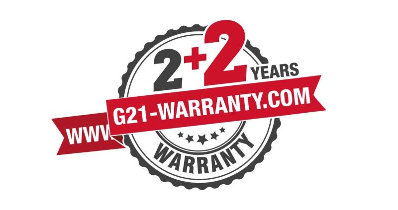 Na nejdůležitější část mixéru - tělo s elektronikou a motorem - máte dokonce čtyřletou záruku. Díky prvotřídním materiálům a promyšlenému zpracování trupu blenderu jsme si kvalitou jisti. Prodlouženou záruku získáte registrací na webu http://g21-warranty.com/registration. Využijte tuto možnost a po koupi se zaregistrujte. Prodloužená záruka 2 + 2 roky se vyplatí!8595627419325225.88