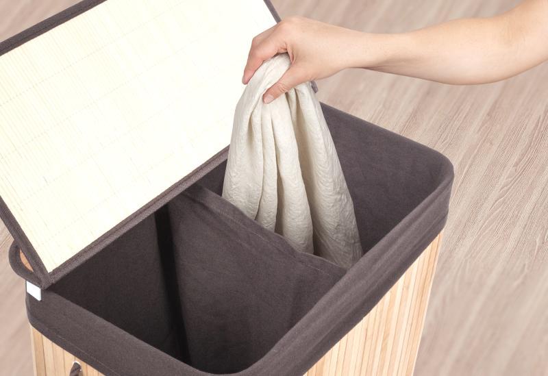 Bambusový koš G21 s pevným víkem má pratelnou látkovou vložku, rozdělenou na dva samostatné oddíly. Špinavé prádlo tak můžete třídit už před praním a umístit zvlášť kousky podle materiálu nebo barvy.Přírodní krása a elegance