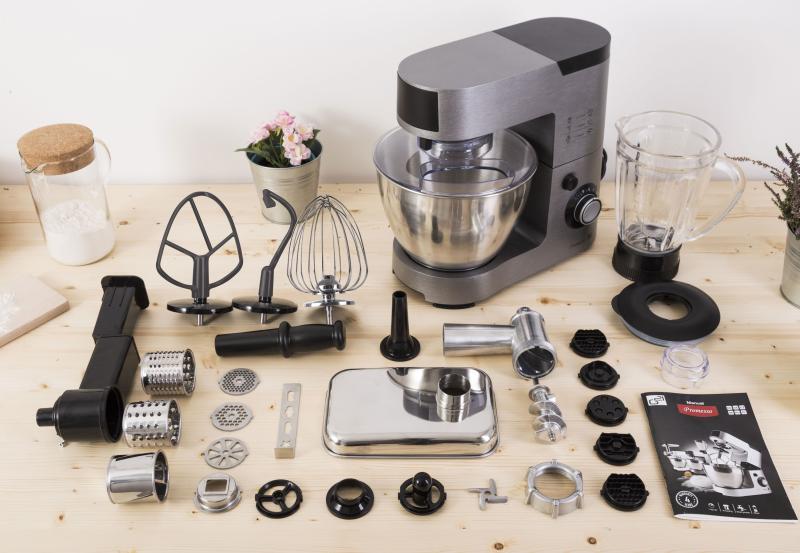Celokovový kuchyňský robot G21 Promesso Iron Grey s neuvěřitelným výkonem 1 500 W má už v základním balení kompletní příslušenství pro mixování, hnětení, míchání, mletí a další činnosti.Jeden za všechny – charakteristika celokovového kuchyňského robota s kovovými převody G21 Promesso je přesná. S výkonem 1 500 W, neuvěřitelně bohatým příslušenstvím a 4letou zárukou na kvalitu zastane veškerou práci při přípravě na vaření, pečení i mixování.