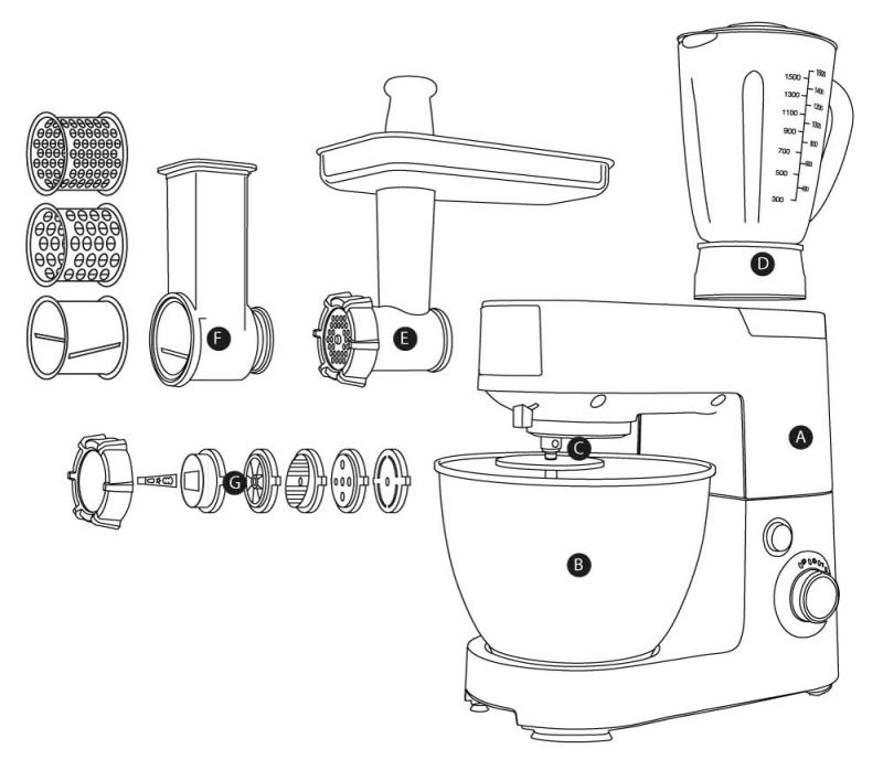 Co to znamená? Metla se otáčí kolem své osy a zároveň kolem obvodu mísy. Všechny vložené suroviny se tak promíchají dokonale a rychleji než je běžné. Jedná se o nejefektivnější způsob míchání, který vám ušetří čas, strávený v kuchyni.Podívejme se na příslušenství a schopnosti podrobněji