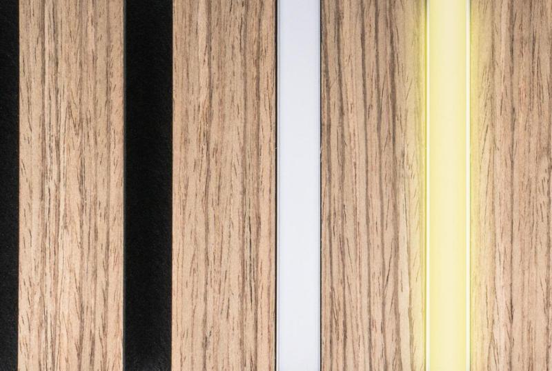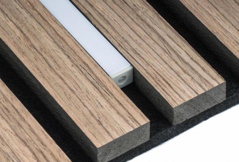 LED pásek v hliníkovém profilu s mléčným difuzorem, hustota LED čipů 120/metr, světelný tok 2400 lm/metr.Správně zvolené osvětlení dokáže i navodit atmosféru a podtrhnout detaily interiéru. LED osvětlení v akustických panelech je vizuálním zážitkem, navíc také výrazně šetří energii i peníze. Spojení designového lamelového obkladu se světelným profilem tvoří krásný i praktický designový prvek. Podívejte se, jaké má přednosti.