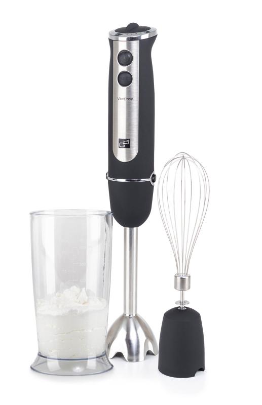 Ano, příslušenství, kterým jsme tyčový mixér VitalStick vybavili, je skutečně bohaté. Základní tyčový nástavec můžete nahradit nerezovou metličkou na sníh nebo nástavcem na přípravu hebkého, hladkého pyré. O stojanu jsme se už zmínili, o nádobách ne, že? K VitalSticku jsou hned dvě. Kvalitní, transparentní s měrnou stupnicí. A spolu s ostatním příslušenstvím je samozřejmě můžete mýt i v myčce.Specifikace