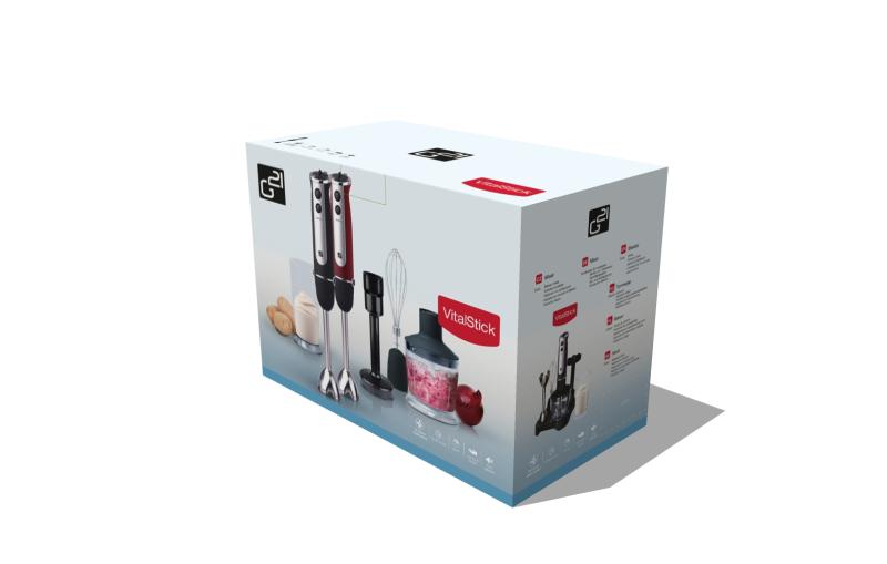 Multifunkční tyčový mixér G21 VitalStick v černé barvě s výkonem 800 W. Unikátní rozložení nožů 3D Quattro blade systém pro mixování ve 4 úrovních. Mixovací nástavec, šlehací metla, nástavec na pyré, nádoba na sekání, nádoba na šlehání, stojan.Tyčový mixér VitalStick s neuvěřitelným výkonem, krásně tichým chodem, unikátně sestavenými noži, extra odolným celokovovým tělem a bohatým příslušenstvím vám jako novinku představujeme právě teď. V čem je ještě výjimečný?