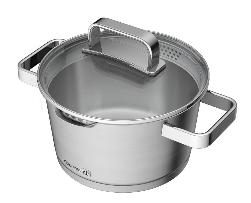 Obrovskou výhodou oproti běžně používaným hrncům jsou výparníky/cedníky, kterými jsme osadili všechny poklice v sadě. Už si nepopálíte ruce při slévání horké vody z brambor či těstovin. Pro rychlejší uvedení surovin k varu jen pootočíte poklicí a výparník/cedník se uzavře.Pozornost jsme věnovali i provedení poklic