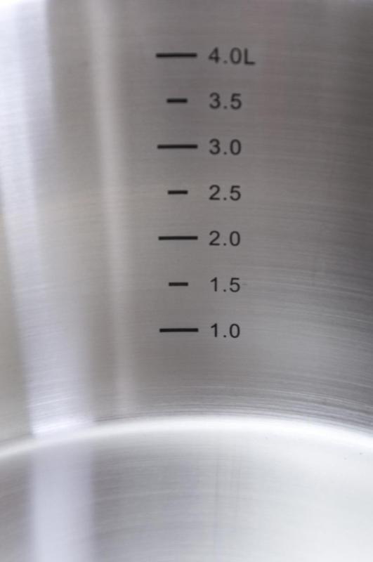 - Dna o tloušťce 5,7 mm u hrnců do průměru 16-24 cm, 4,2 mm u pánve o průměru 24 cm a 5,2 mm u pánve o průměru 28 cm