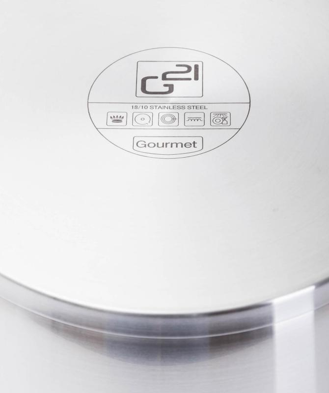 Vynikající vlastností nerezové pánve G21 Gourmet Miracle je nemožnost připálit v ní připravované jídlo. Silné stěny a vrstvené sendvičové dno bez vzduchových kapes dokonale vedou teplo a zabraňují připalování pokrmů.Pozornost jsme věnovali i provedení poklice