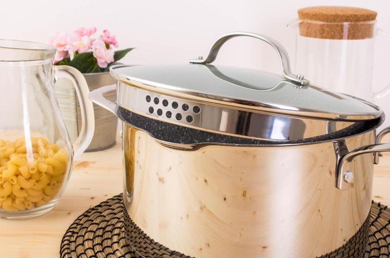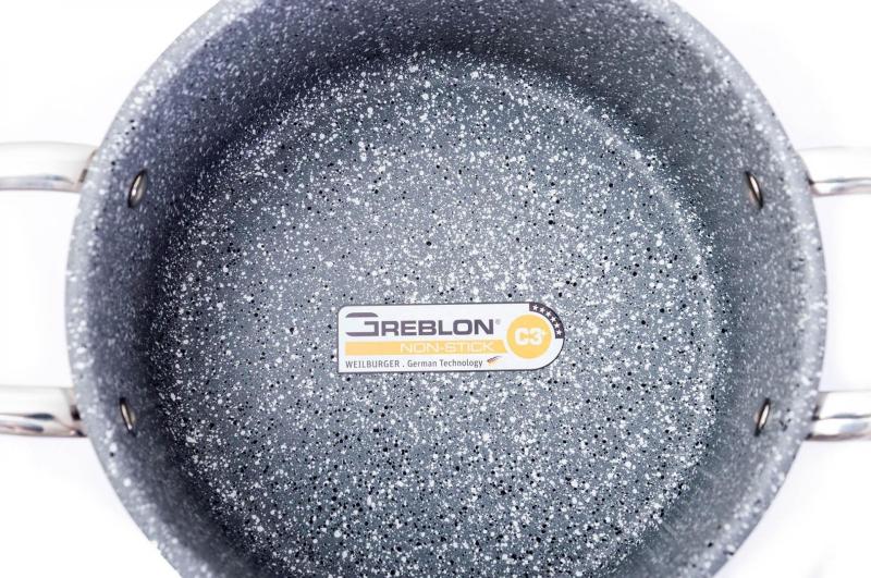 - Materiál: potravinářská ocel 18/10 CrNi s nepřilnavým povrchem Greblon C3+ marble třívrstvým povlakem