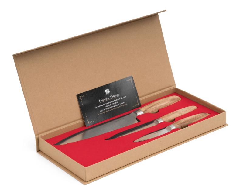 Rukojeti jsou vyrobeny z exotického dřeva, nazývaného pro svou výraznou kresbu zebrawood. Jde o druh dřeva, pocházející zejména z tropických oblastí Afriky. Je oblíbené pro svůj atraktivní vzhled a jedinečné vlastnosti – velkou tvrdost a pevnost, díky kterým je odolné vůči opotřebení. Krásné linie těchto nožů se stanou ozdobou každé kuchyně.