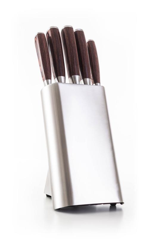 Nevíte kam nože bezpečně uložit? Do stojánku! Součástí sady je designový stojánek ve stříbrném provedení. Ve stojánku má každý z nožů své bezpečné místo.