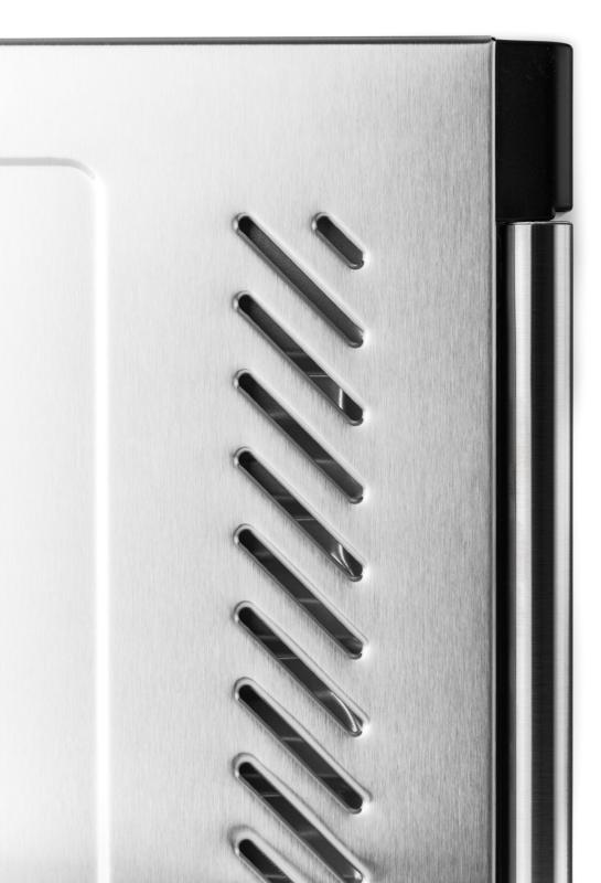 Sušička potravin G21 Breezer má na rozdíl od běžných sušiček také nerezová dvířka, která zajišťují nižší spotřebu energie, dokonalou cirkulaci vzduchu, efektivnější sušení a zkracují dobu sušení potravin. Abyste dvířka v průběhu sušení nemuseli otevírat a do sušičky se tak nedostal chladný vzduch, vybavili jsme je okénkem. Snadno a rychle tak zjistíte stav sušeného ovoce, zeleniny, bylinek, hub nebo masa. Díky dvířkům můžete také vyjmout libovolný počet plat a sušit na menším počtu bez obav z narušení kvality sušení.Výkonem je nadprůměrná ve své třídě