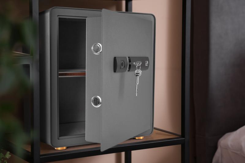 Když jde o bezpečnost, záleží na detailech. Ke svým cennostem se dostanete rychle, pohodlně, bezpečně a bez zbytečných hesel. Dvířka jsme osadili biometrickým zámkem pro až 29 uložených otisků prstů, který po přiložení prstu trezor během vteřiny otevře. A pokud se vybije baterie? Pak jednoduše použijete záložní bezpečnostní klíč, který jsme přidali do balení.Luxus, který chrání