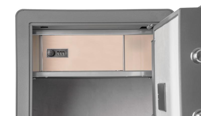 - 1 menší úložný prostor se zámkem na kód uvnitř trezoru