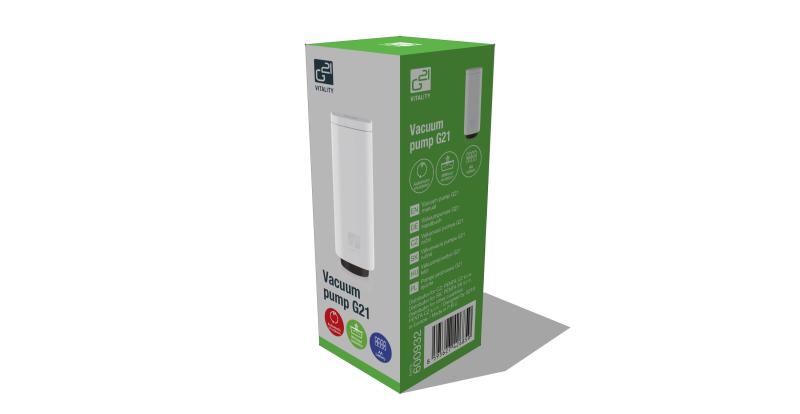 Vakuovací pumpa G21 prodlouží čerstvost potravin. Automatické vypnutí, rychlé odsátí vzduchu, flexibilita pro různé vakuovací příslušenství, napájení na baterie.