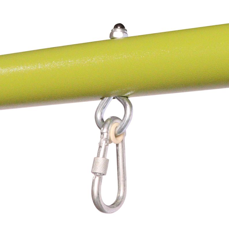 - stabilní konstrukce z ocelových trubek s kovovými oky pro zavěšení houpaček