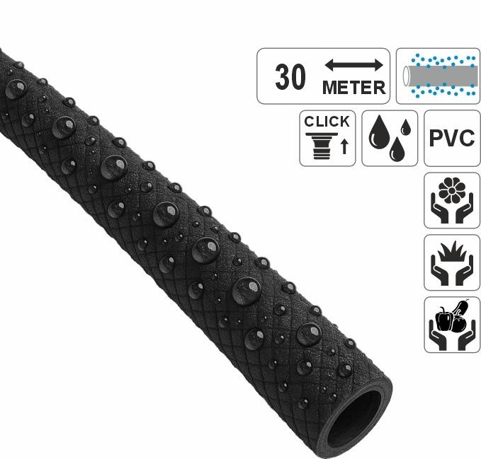 Hadice zajišťuje rovnoměrný přísun vody po celé délce formou jemné kapkové závlahy, čímž minimalizuje spotřebu vody a zabraňuje poškození rostlin. Jeden konec je vybaven rychlospojkou pro snadné připojení, druhý konec je opatřen šroubovacím uzávěrem pro ukončení nebo napojení další hadice.