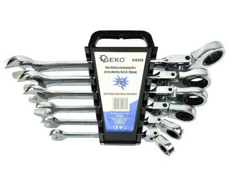 Klíče ráčnové očkoploché s kloubem, sada 6ks, 8-19mm, plast. držák, GEKOSpecifikace: