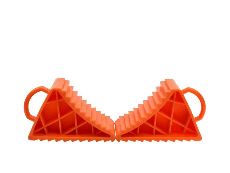 Sada robustních klínů pod kola. Jsou vyrobeny z vysoce kvalitního plastu a určeny k zajištění různých typů vozidel proti náhodnému pohybu. Protiskluzový žebrovaný povrch zabraňuje klouzání klínů na površích se špatnou přilnavostí.