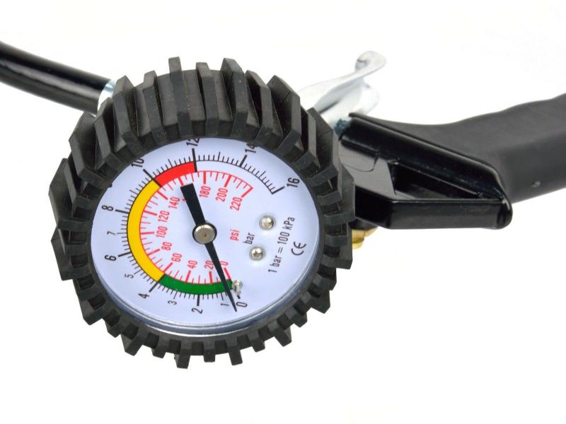 • Je vybavena pružnou hadicí dlouhou 37cm a velkým čitelným manometrem v gumovém krytu chránícím ho před nárazy.