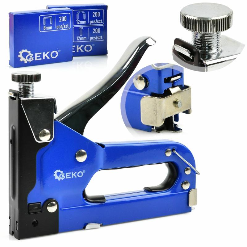 Sešívačka 3v1 + sada sponek 600ks GEKOČalounická sešívačka 3v1 je zařízení, které se používá ke spojování různých materiálů s dřevěným nebo dřevu podobným podkladem. Konstrukce sešívačky umožňuje rychlou a efektivní práci díky přesnému napínacímu a spouštěcímu mechanismu. Neuvěřitelnou výhodou sponkovačky je její schopnost pracovat: se standardními sponkami 4-14 mm, sponkami U 10-12 mm, hřebíky 10-14 mm. Vysokokapacitní zásobník vám umožní pracovat dlouhou dobu bez potřeby doplňování sponek. Sešívačka má nastavitelné napětí pružiny a je dokonale vyvážená, takže po uvolnění spouště se spona přesně přitlačí k materiálu.
