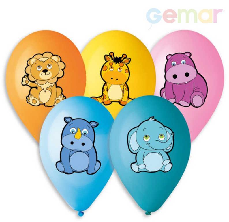 Kvalitní latexové barevné nafukovací balonky Gemar s obrázky zvířátek (lev, žirafa, hroch, nosorožec, slon). Vhodné na plnění vzduchem i heliem. Balení po 5ks v sáčku. Barvy v mixu (tyrkysová, růžová, žlutá, oranžová a světle modrá )