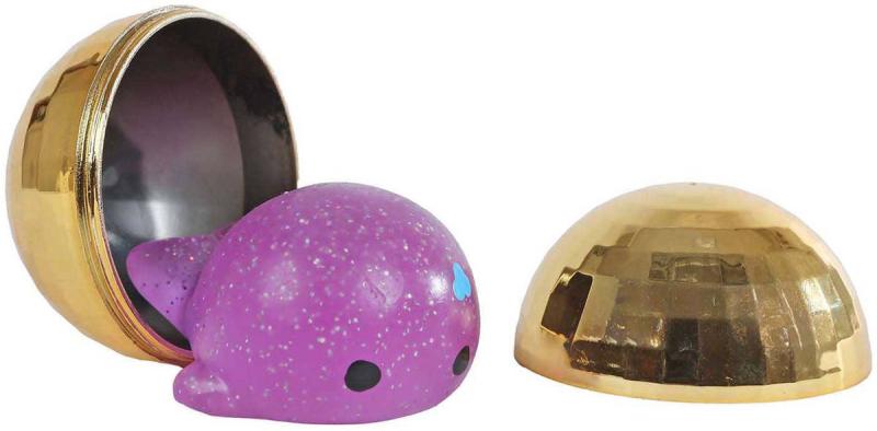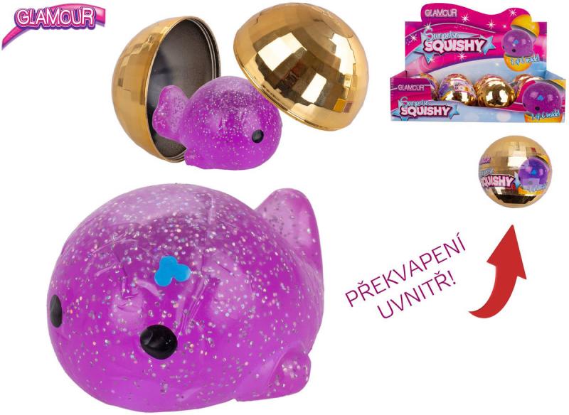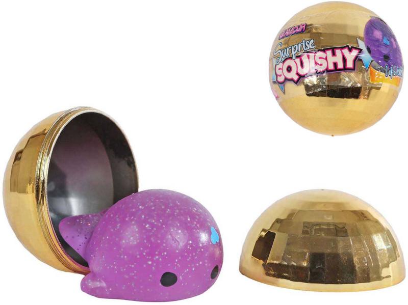 Glamour plastová zlatá koule, která v sobě ukrývá strečové, mačkací třyptivé zvířátko. 6 různých variant, s překvapením.Rozměry balení (š): 6,5cm