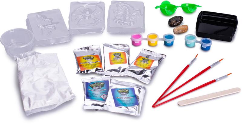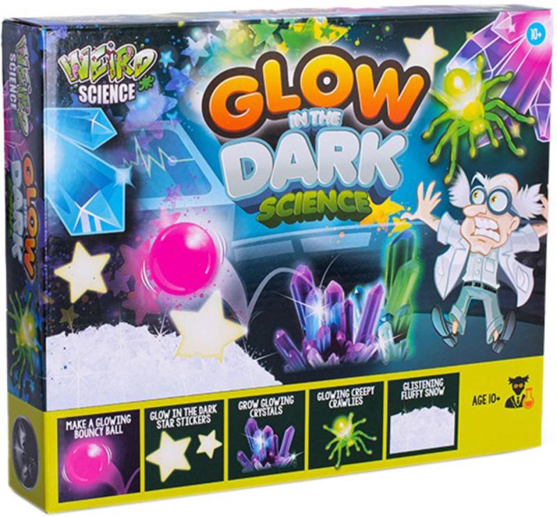 Jak udělat něco, co svítí ve tmě? Dokážete si vypěstovat vlastní krystaly? Pomocí této sady a jejích pokusů se dozvíš o tajemstvích věcí, které v noci svítí! Vyrobte si vlastní nadýchaný sníh a strašidelné potvůrky, kterými můžete vystrašit i své kamarády. Tento balíček a jeho obsah jsou navrženy tak, aby vaše dítě uvedly do světa podivné vědy a úžasných objevů!