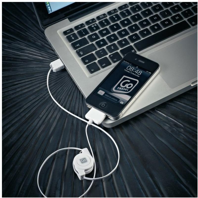 USB kabel pro nabíjení a datový přenos Apple zařízení s 30pinovým konektorem, navinutý na praktickém navíjecím kole, kompatibilní s iPadem, iPhonem 4S a iPody. Zobrazit celý popis