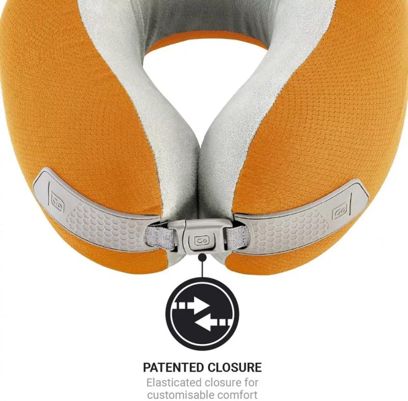 Oranžový podhlavník je navržen tak, aby zajistil pohodlí během delších cest a odpočinku mimo domov. Díky výplni z paměťové pěny s vysokou hustotou se dokonale přizpůsobí tvaru hlavy a krku, čímž pomáhá udržet správnou polohu a zmírňuje tlakové body.