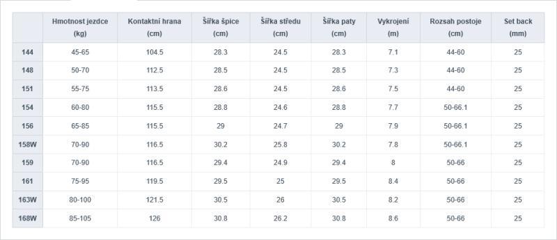 • Camber: klasické prohnutí pro stabilní jízdu, přesnost a dobrý odraz při skocích