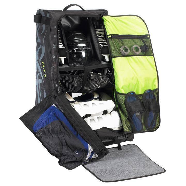 Priestranná hokejová taška s kolieskami pre hokejistov.Už šiesta generácia tašiek Tower. Najnovšími inováciami sú polstrovaný ramenný popruh, ktorý umožňuje pohodlné nosenie tašky, kompozitný rám, ktorý znižuje hmotnosť tašky o takmer 2 kilogramy a umožňuje flexibilitu, lepšiu ventiláciu, vylepšený systém pre rýchlejšie usušenie na vzduchu. Tašku je možné tiež okamžite zložiť a uložiť pod lavicu.