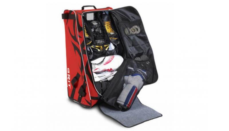 Součástí tašky je také praktická vnitřní rohožka, která usnadňuje přezouvání a svlékání bruslí, čímž přispívá k většímu pohodlí při přípravě na zápas nebo trénink. Na boční straně jsou navíc umístěny úchyty pro bezpečné upevnění hokejky, což usnadňuje její přenášení.