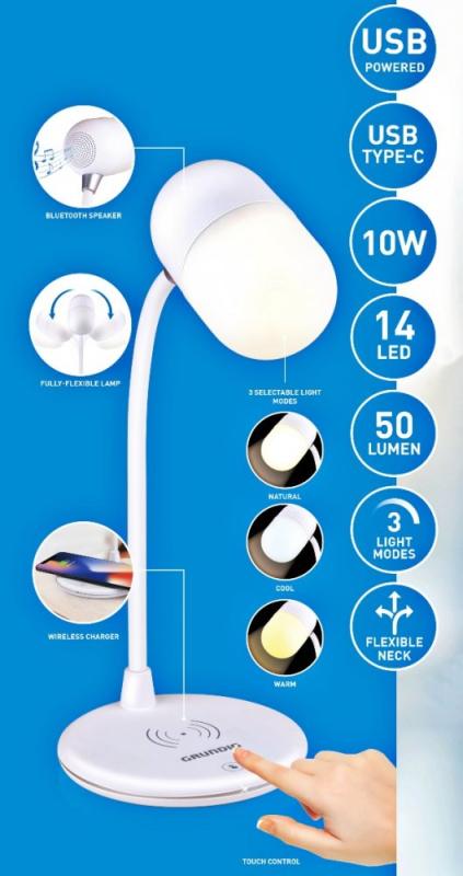 Grundig Stolní lampa LED s bezdrátovou nabíječkou na mobil 3v1