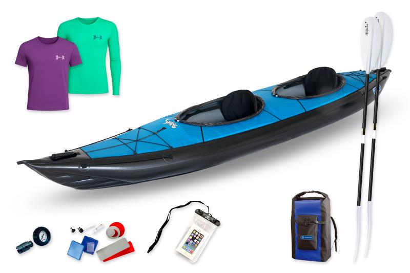 Dvoumístný nafukovací kajak s uzavřenou palubou vhodný pro jezera, přehrady a mírné řeky, včetně kompletního příslušenství pro pohodlné pádlování. zobrazit celý popis