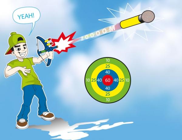 Luk Bulls Eye se třemi měkkými pěnovými šipkami. Otestujte si, jak jste dobří – zaměřte se na obal. Do interiéru i exteriéru.